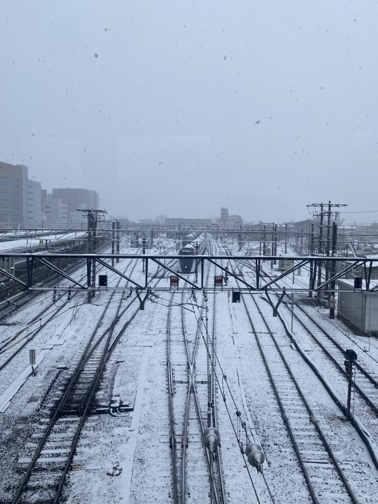 ↑ 昨年の松本駅の雪景色⛄ この日は大寒波で電車も凍っていました