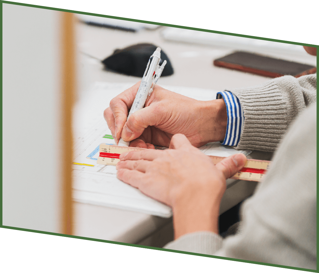 現場での良好なコミュニケーションこそ、完成までスムーズに進めるためのカギ。各方面への対応が度重なるため、柔軟性や管理能力・処理能力を育てていきます。
